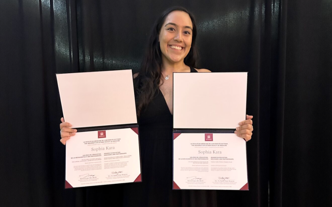 Congratuations to Master of Public Health student Sophia Kara on being recognized by the University of Ottawa’s Faculty of Medicine with the Award in Excellence in Graduate Studies and the Graduate Studies Wellness Champion Award. Sophia made a huge contribution to building CCAER’s FRAME tool during her MPH practicum with the team over the summer. We can attest to her high quality work and are thrilled to see her success being acknowledged. Congrats!