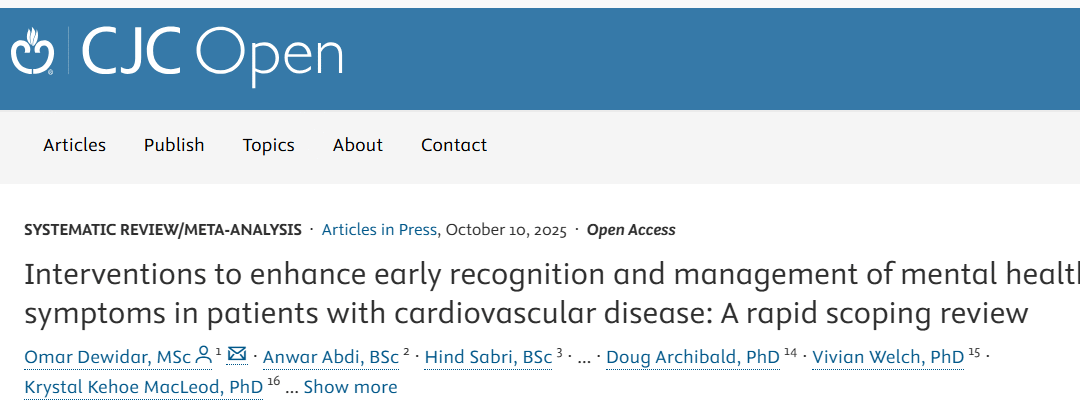 October 10, 2025 by kkehoemacleod | Oct 10, 2025 | Uncategorized Happy to share our scoping review has been accepted for publication in CJC Open.